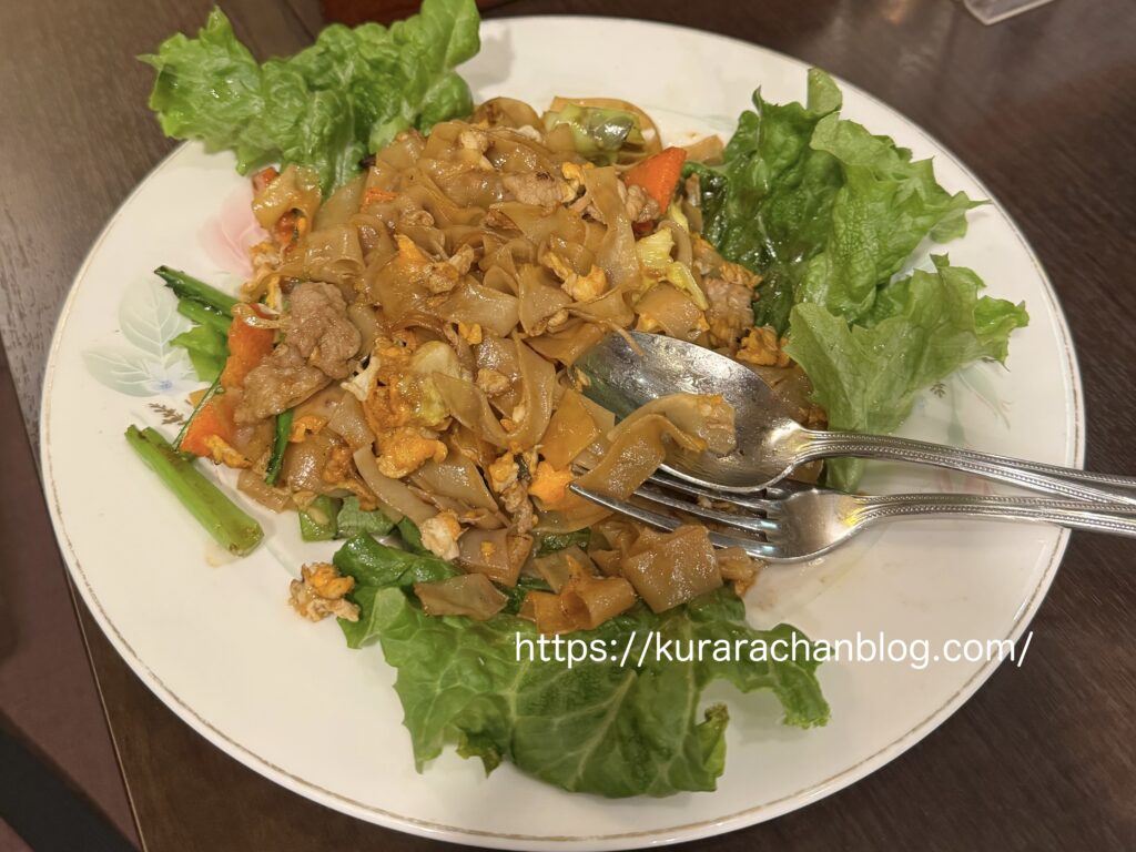 調べたらセン・ヤイ(幅広米麺)というらしい…炒めてもこんなにモチモチなのか~