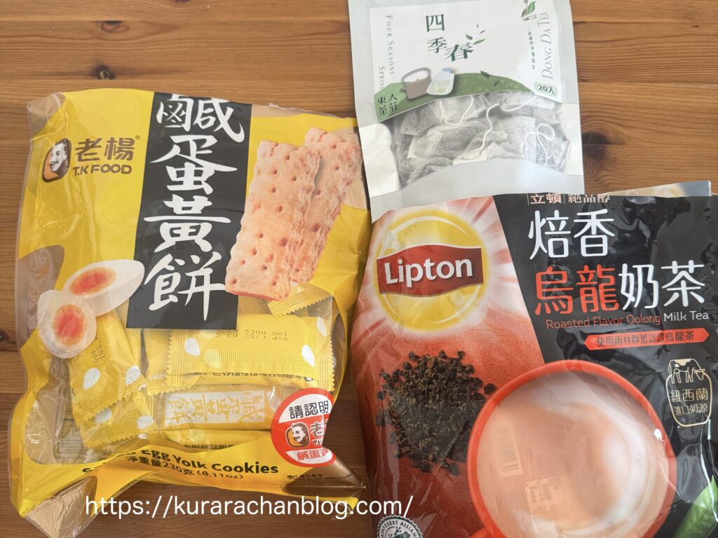お菓子は塩卵クッキー(鹹蛋黄餅)というらしく、塩漬けにしたアヒルの卵黄を練り込んだ、サクサクとした甘じょっぱいクッキーらしいです。