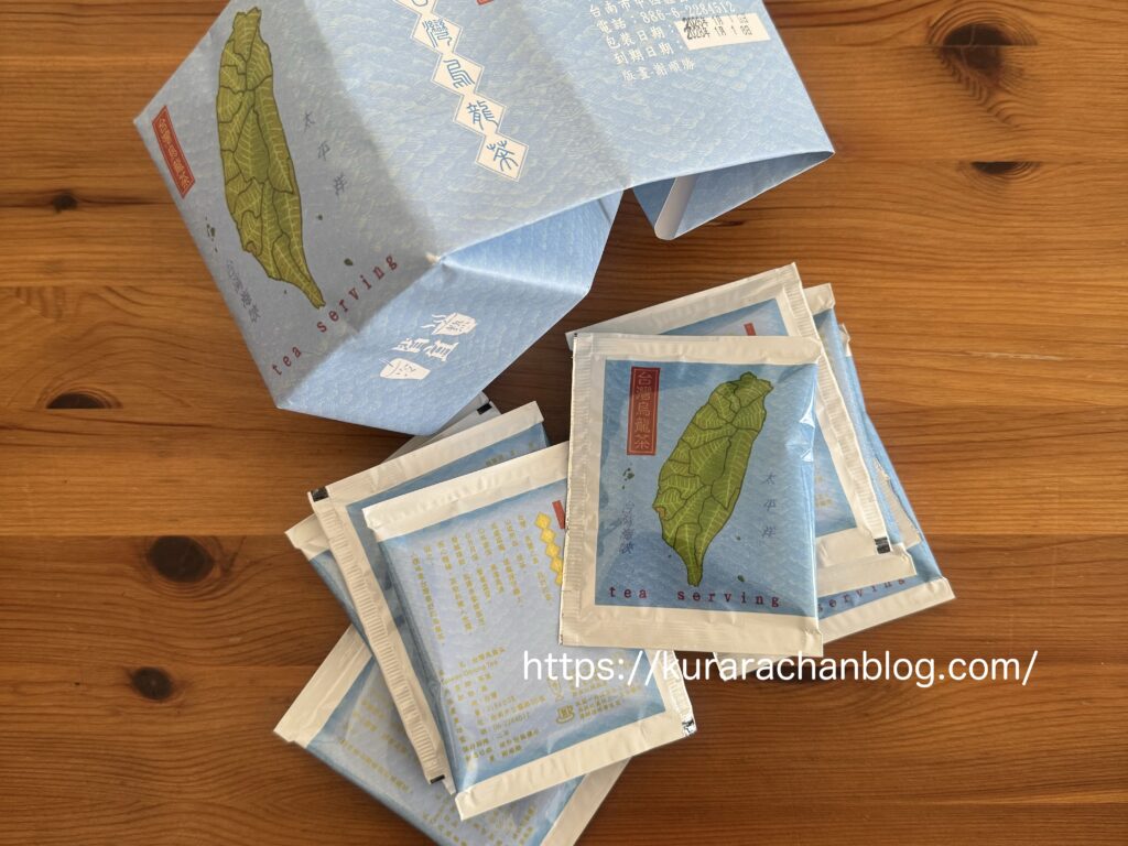 何種類かあって、アソートセット(ピンクのパッケージ)と、ウーロン茶(青いパッケージ)を購入。