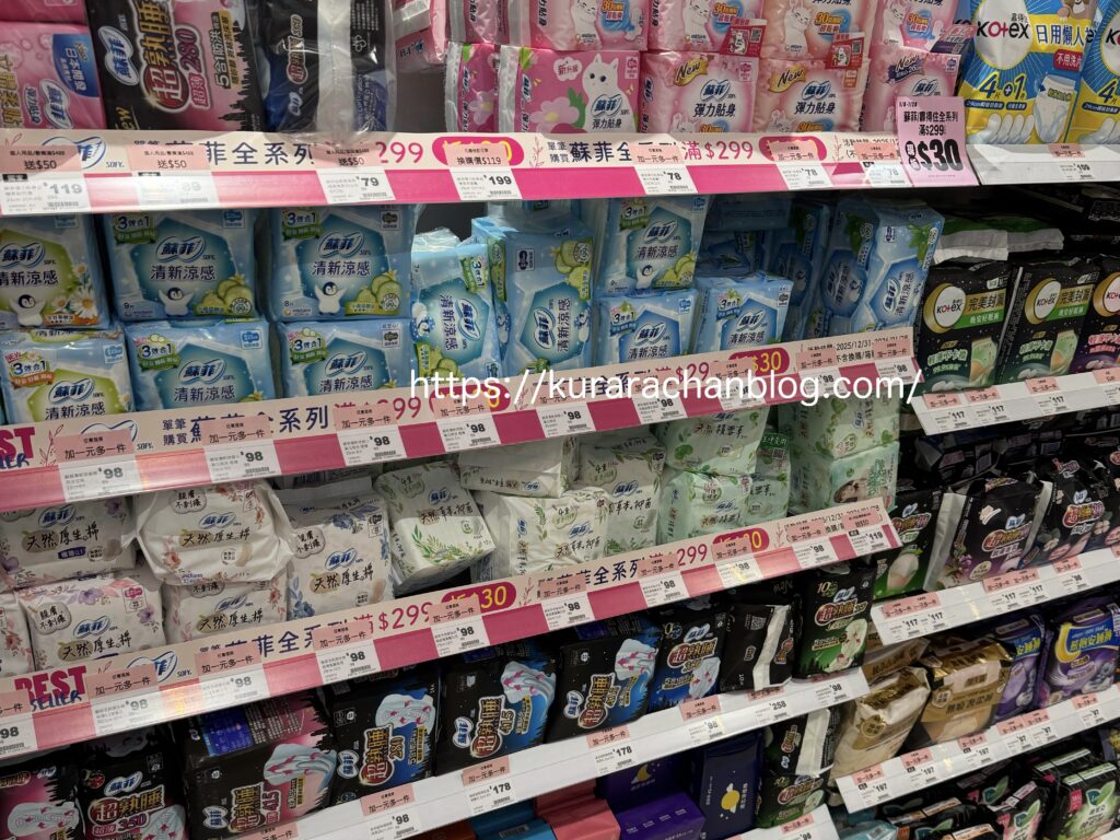 ナプキンが無かったので急いでワトソンズで調達しました。