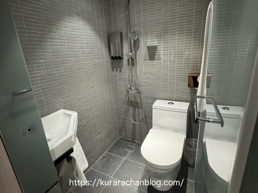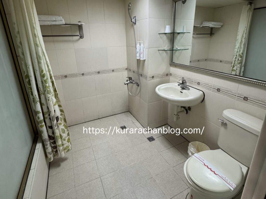 ここはとにかく狭すぎる&シャワーカーテンも無いので、トイレがびしょびしょになるのはもちろんだけど、トイレットペーパーも危なくない!?びしょびしょになるんちゃう!?とひやひやしました。