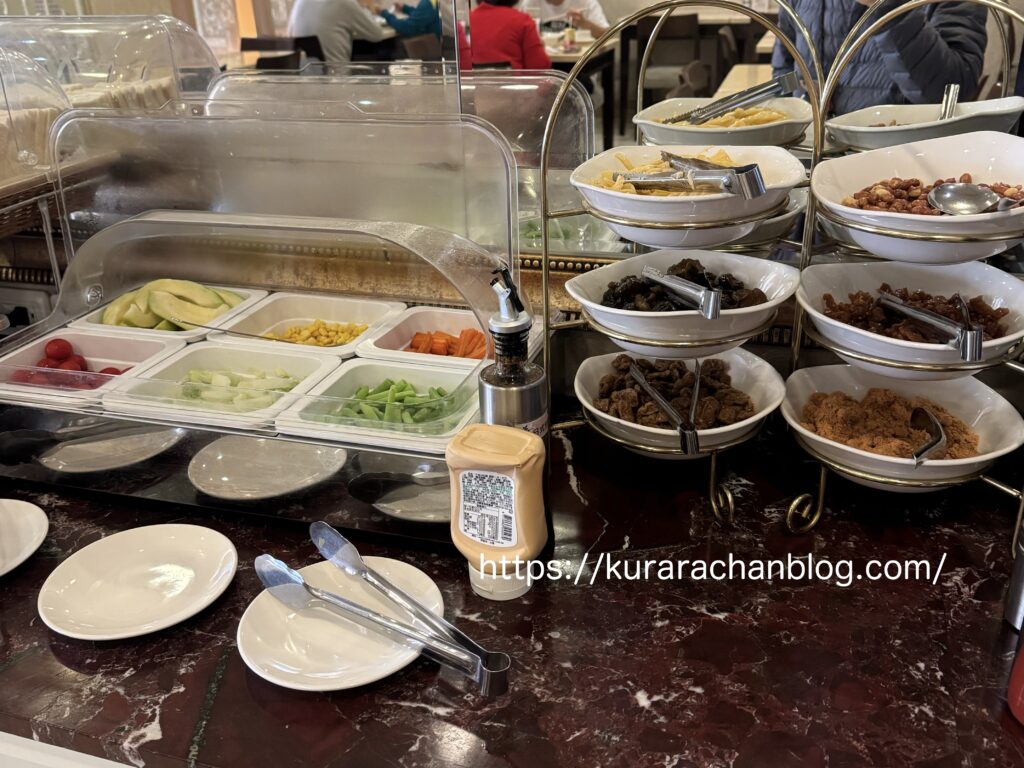 サラダコーナーには蜜棗という台湾では冬に食べられるフルーツもあり。