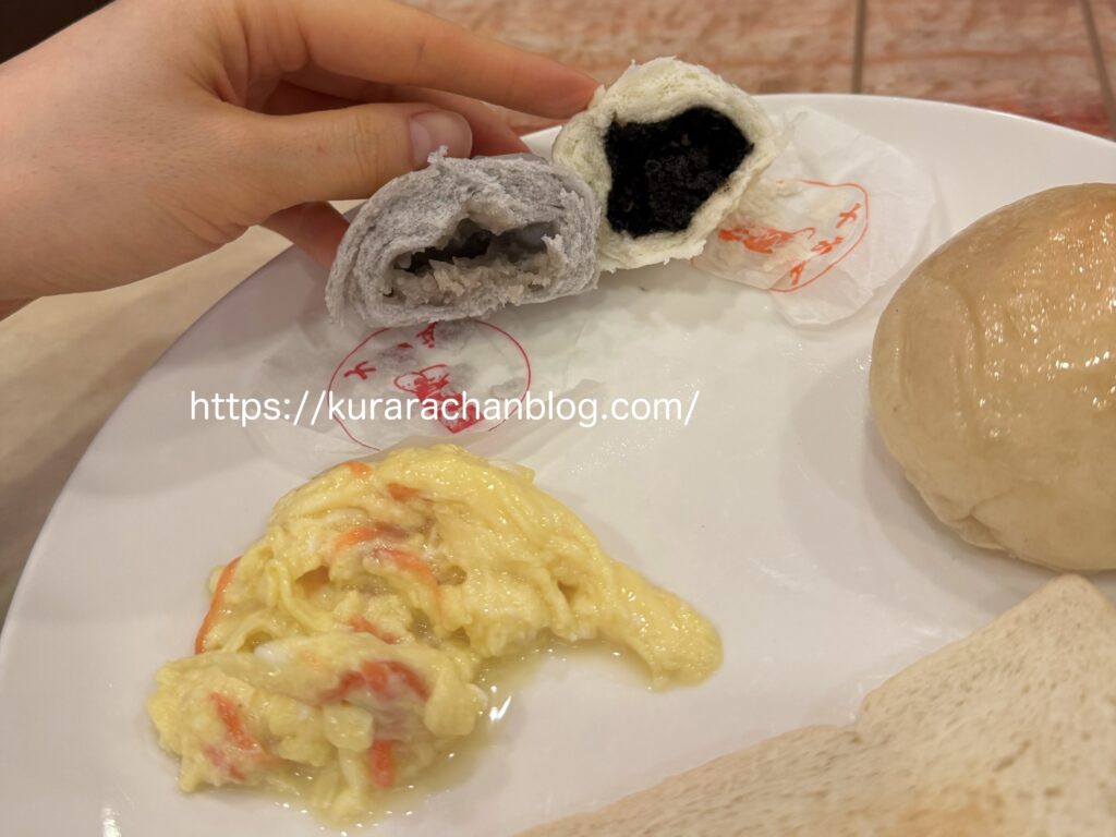 取ってきた饅頭はタロイモと餡子でした。どれも甘い系かな?