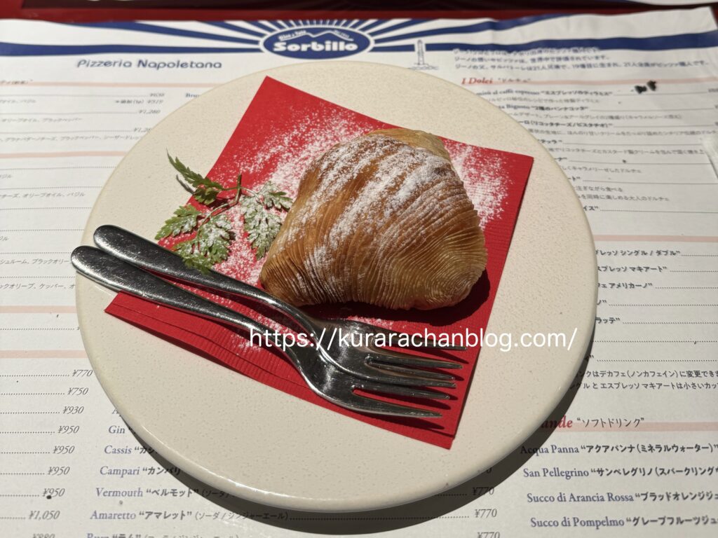 何層にも重ねた薄いパイ生地でリコッタチーズとカスタード製クリームを包んで固く焼き上げた、らしい。